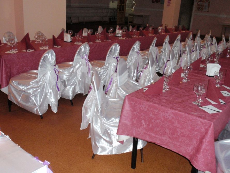 - Зал полностью (тканями,цветами,декором,подсветками,дорожки в цвет свадьбы на столы,стулья,оформление входа в ресторан )